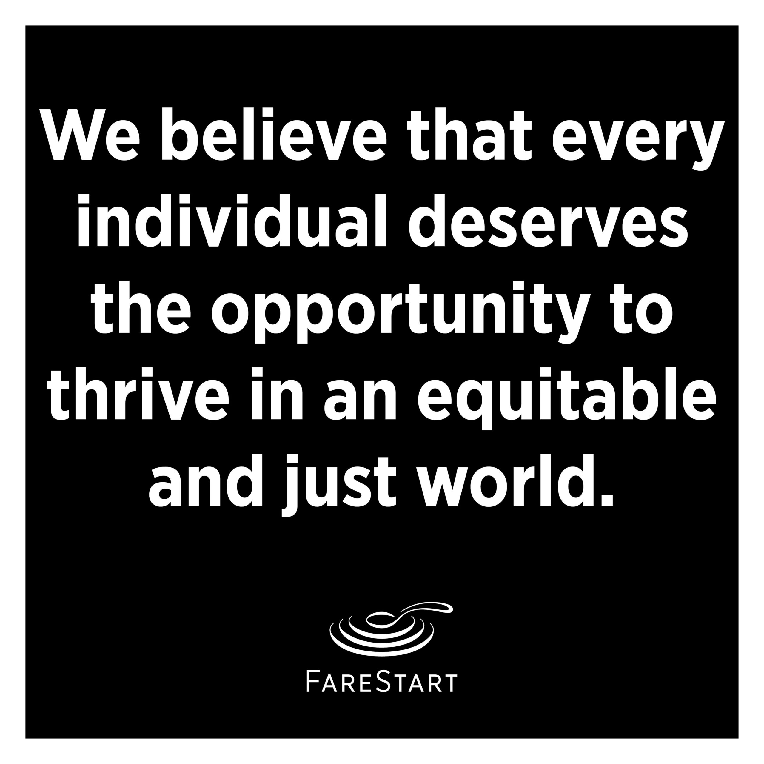 Now, more than ever, we at FareStart remain steadfast in our commitment to be an anti-racist organization and to live by our values of inclusion, respect and accountability. Words cannot begin to express the sorrow I feel for those who are hurting so deeply. And even though I will never be able to fully understand their pain, I know we can do better and we must do better so that every individual does have the opportunity to thrive in an equitable and just world.