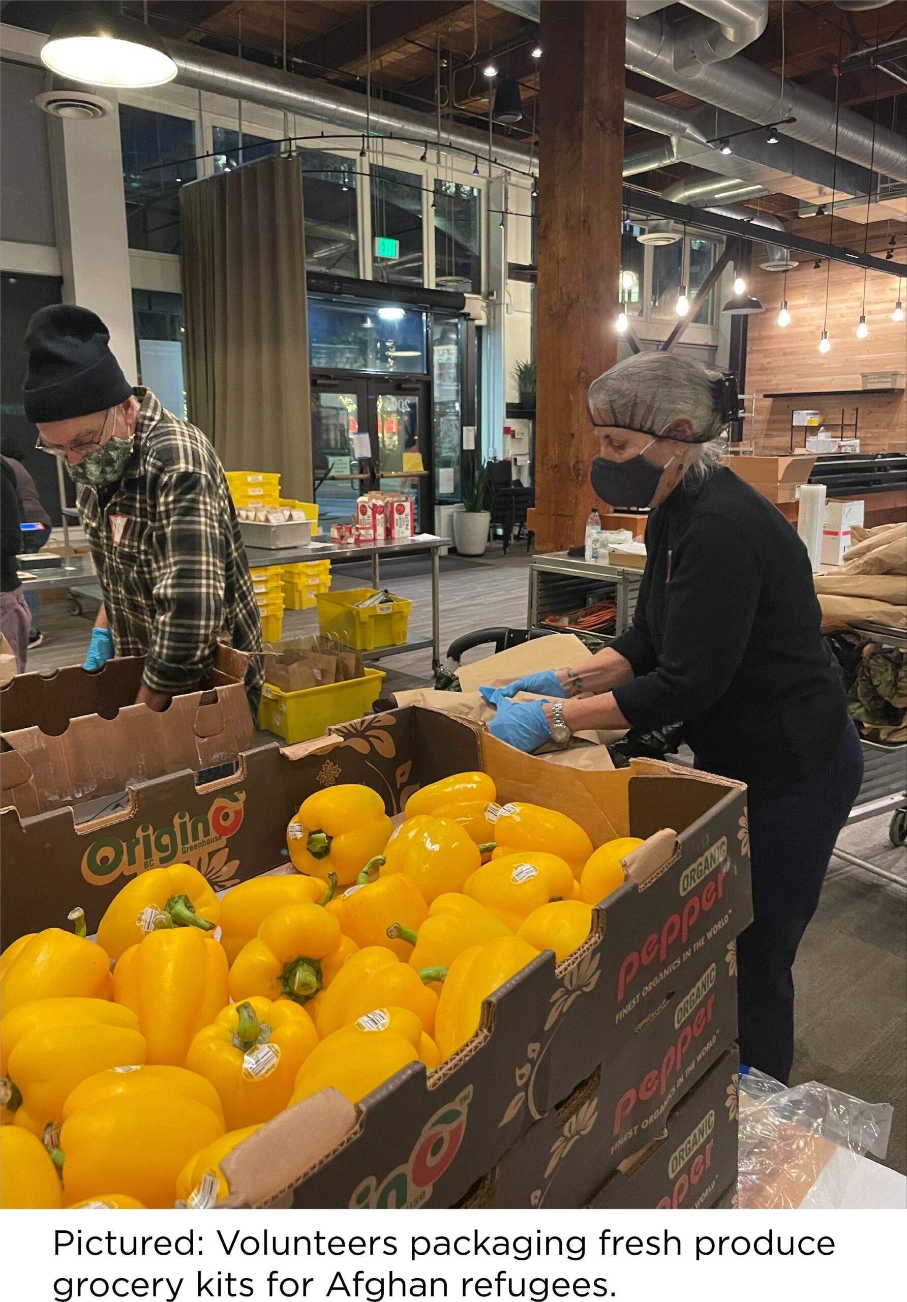 Recently, through the WSDA We Feed Washington Pilot Food Program we began expanding our mobile market pilot to include food boxes and grocery kits that we’re distributing to Afghan refugees, in partnership with the International Rescue Committee (IRC). We also have been working in conjunction with the YMCA to have up to 200 produce boxes packed and distributed each week. In addition, FareStart has been taking part in the YMCA’s market pop-ups for their Y on the Fly program. This fall we participated in YES Fest and worked alongside the Bureau of Fearless Ideas, Seattle Housing Authority (SHA) and Neighborhood House. Since the pilot began, we have partnered with King County Housing Authority and Kent Youth and Family Services in Kent, Shoreline and Auburn. Currently we are partnering with Neighborhood House, YMCA, and Seattle Indian Health Board. We look forward to continuing this work through local events and partnerships. We are continuing to learn about culturally appropriate food and produce to provide to community members.