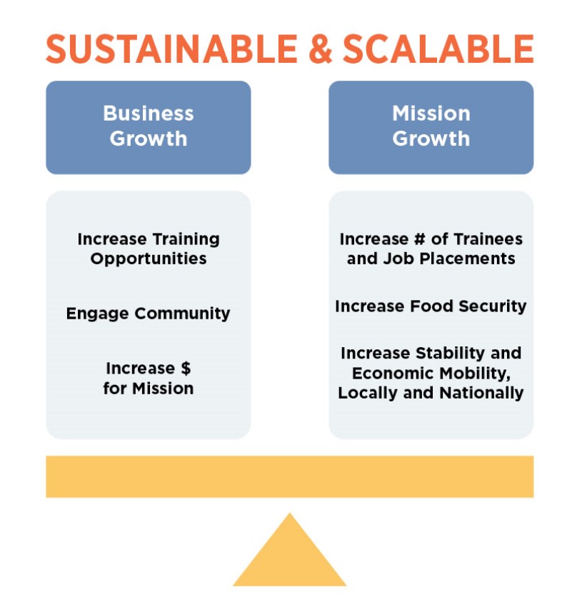 The goal is to have FareStart’s collective social enterprise business portfolio break even or better to partially offset the costs of job training. This earned income creates a more financially sustainable model instead of relying solely on fundraising and public funding. Like other more traditional nonprofits, we also raise money from individual and corporate donors, host fundraising events and apply for government grants. The combination of business-generating revenue with philanthropic and government funding supports our mission and ensures a sustainable model for the future.