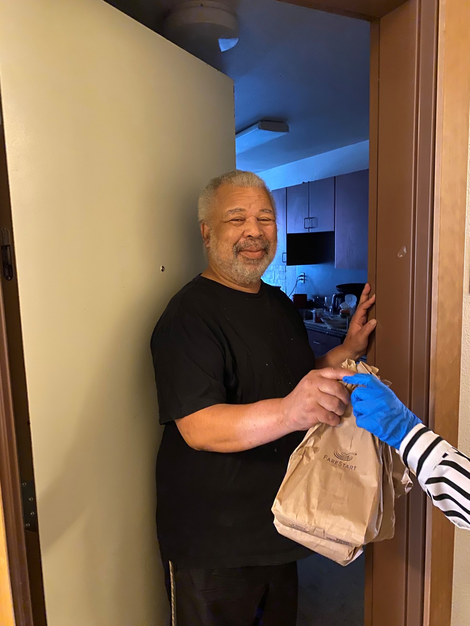 Another PSH staff member explained the longer term benefits this way: “We have one tenant we’ve been struggling to get food support for as he has difficulty creating new routines, so he has been declining a lot of our food options and is unable to cook for himself. But we always know he’s going to be ok because he takes at least two sandwich bags from every FareStart delivery! We know that no matter what, he is getting one healthy meal every day. It really helps us to have that baseline of support that we can rely on while we work with him to gain more skills and food security.”