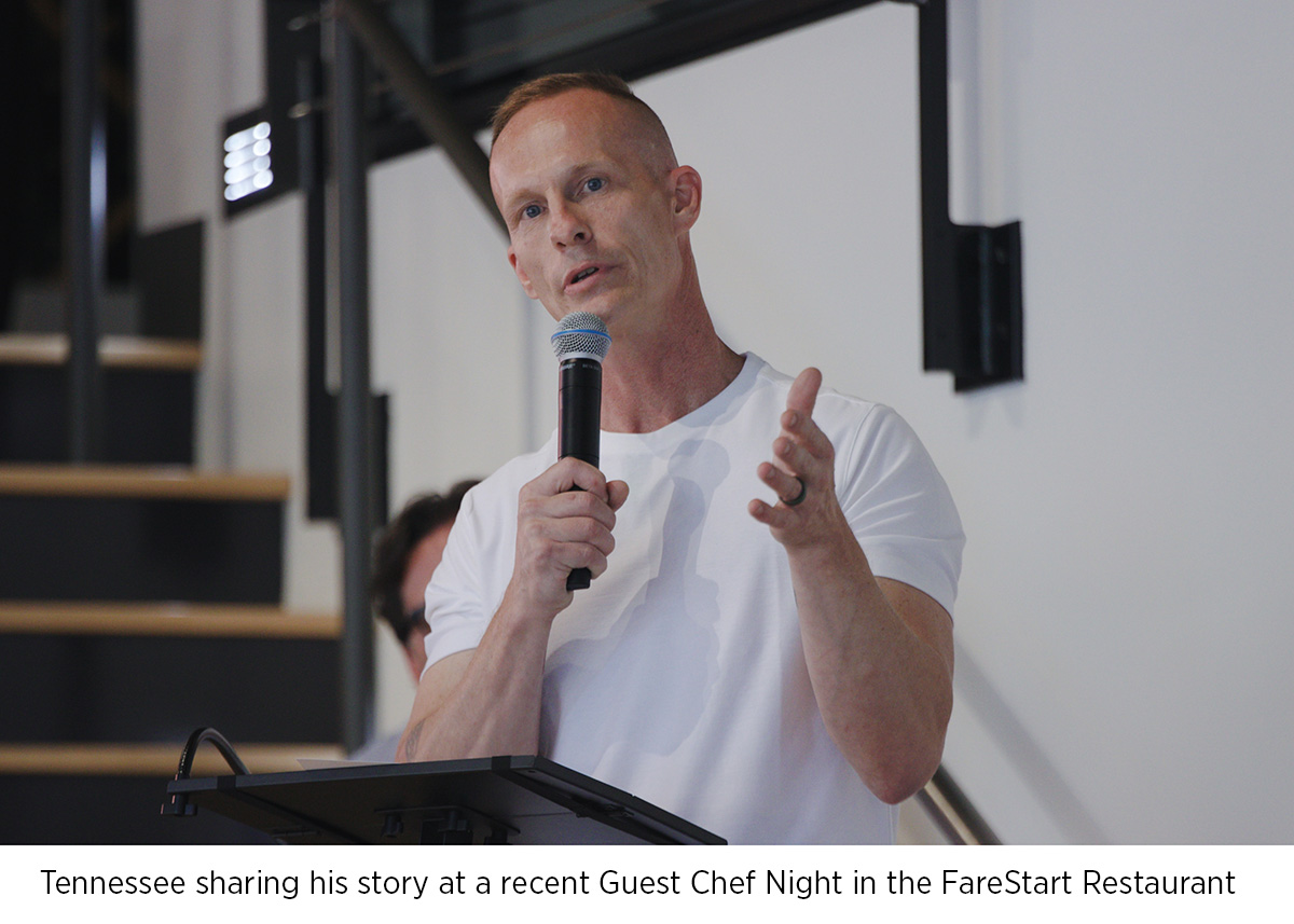 “FareStart allowed me to be proud of who I was authentically without any shame for the mistakes I made previously. And that, for me, was what I needed. Now it’s my obligation to return that kindness and that generosity to every person I meet in this community,” Tennessee said.